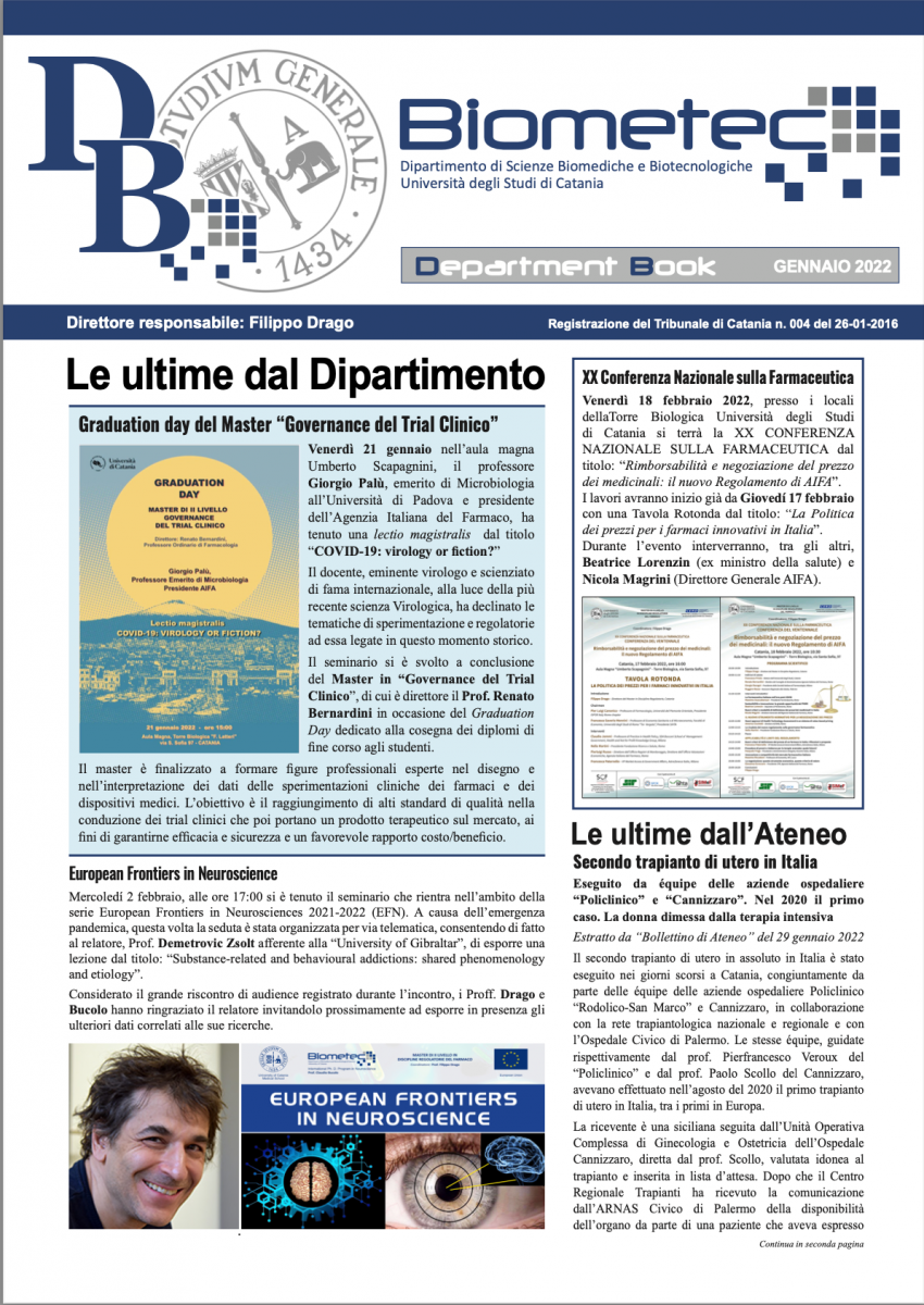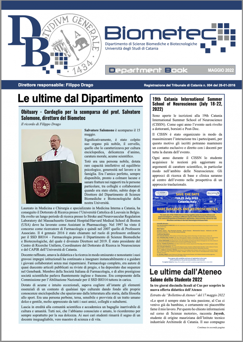 Department Book 2022 GENNAIO MARZO APRILE MAGGIO GIUGNO LUGLIO-SETTEMBRE OTTOBRE-DICEMBRE Ultima modifica: 01/08/2023 - 17:58 Condividi Facebook Twitter Whatsapp Telegram Email
