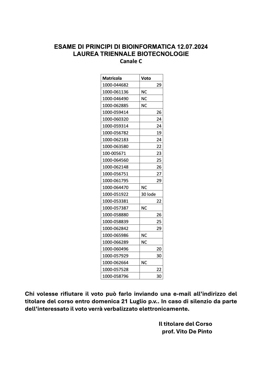 Si avvisano gli studenti del CdL Biotecnologie che le date degli esami di luglio subiranno una variazione a causa di impegni istituzionali: