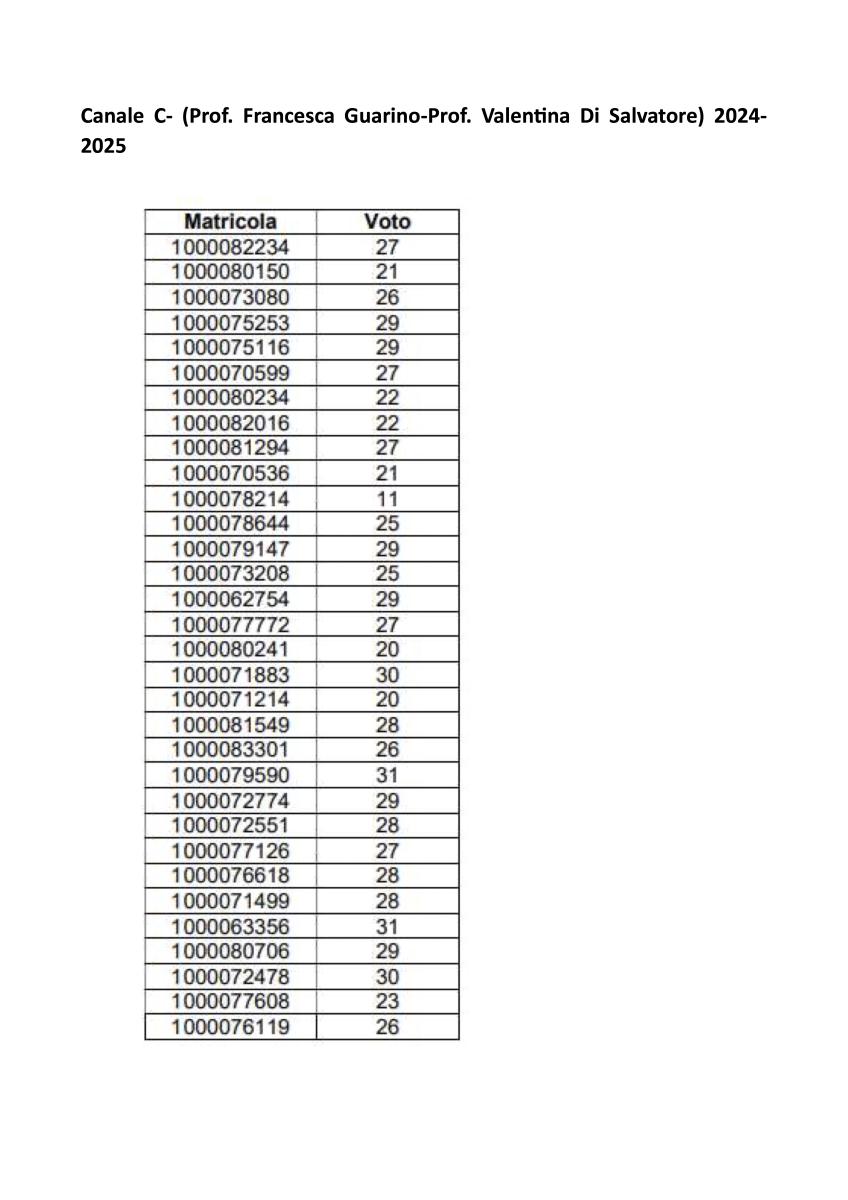 Esito prova scritta esami Principi di Bioinformatica – Corso di Laurea in Biotecnologie del 27-02-2025 - Canale A - B - C