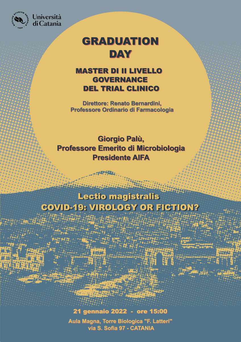 Si svolgerà giorno 21 gennaio 2022 il Graduation Day del Master in Governance del Trial Clinico, di cui è direttore il prof. Renato Bernardini. Il Master è finalizzato a formare figure professionali esperte nel disegno e nell'interpretazione dei dati delle sperimentazioni cliniche dei farmaci e dei dispositivi medici, un'area oggi relativamente carente. L'obiettivo del Master è il raggiungimento di alti standard di qualità nella conduzione dei trial clinici che poi portano un prodotto terapeutico sul mercato, ai fini di garantirne efficacia e sicurezza e un favorevole rapporto costo/beneficio. In tale ambito, il prof. Giorgio Palù, Emerito di Microbiologia presso l'Università di Padova, nella sua qualità di Presidente dell'Agenzia Italiana del Farmaco (AIFA), darà una lettura che, alla luce della più recente scienza Virologica, declinerà le tematiche di sperimentazione e regolatorie ad essa legate in questo momento storico. Il prof. Palù è un eminente Virologo e scienziato di fama internazionale, ha ottenuto prestigiosi riconoscimenti ed è componente della CTS nazionale. Continua a offrire contributi scientifici di rilievo, in aggiunta al suo impegno sociale nella divulgazione, durante questa complessa fase pandemica.